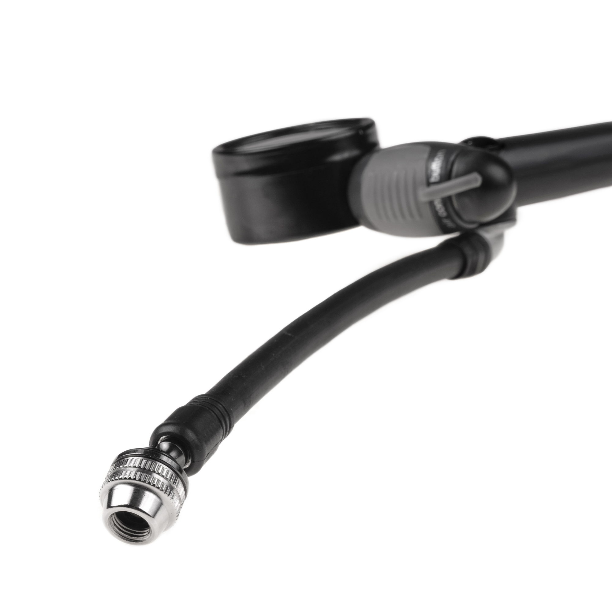 Насос Mountain 2Stage Digital оснащендвухступенчатым переключателем давления, который позволяет выбирать высокое давление для накачивания амортизационных вилок. Встроенный цифровой манометр обеспечивает точные показания давления до 300 PSI / 20,7 бар, головка насоса Pressure-Rite подходит для клапанов Presta и Schrader, а гибкий шланг снимает нагрузку со стержней и клапанов при накачивании шин. Также оснащен кнопкой выпуска воздуха, которая позволяет быстро сбросить давление. Имеет два режима накачивания для амортизаторов и покрышек.