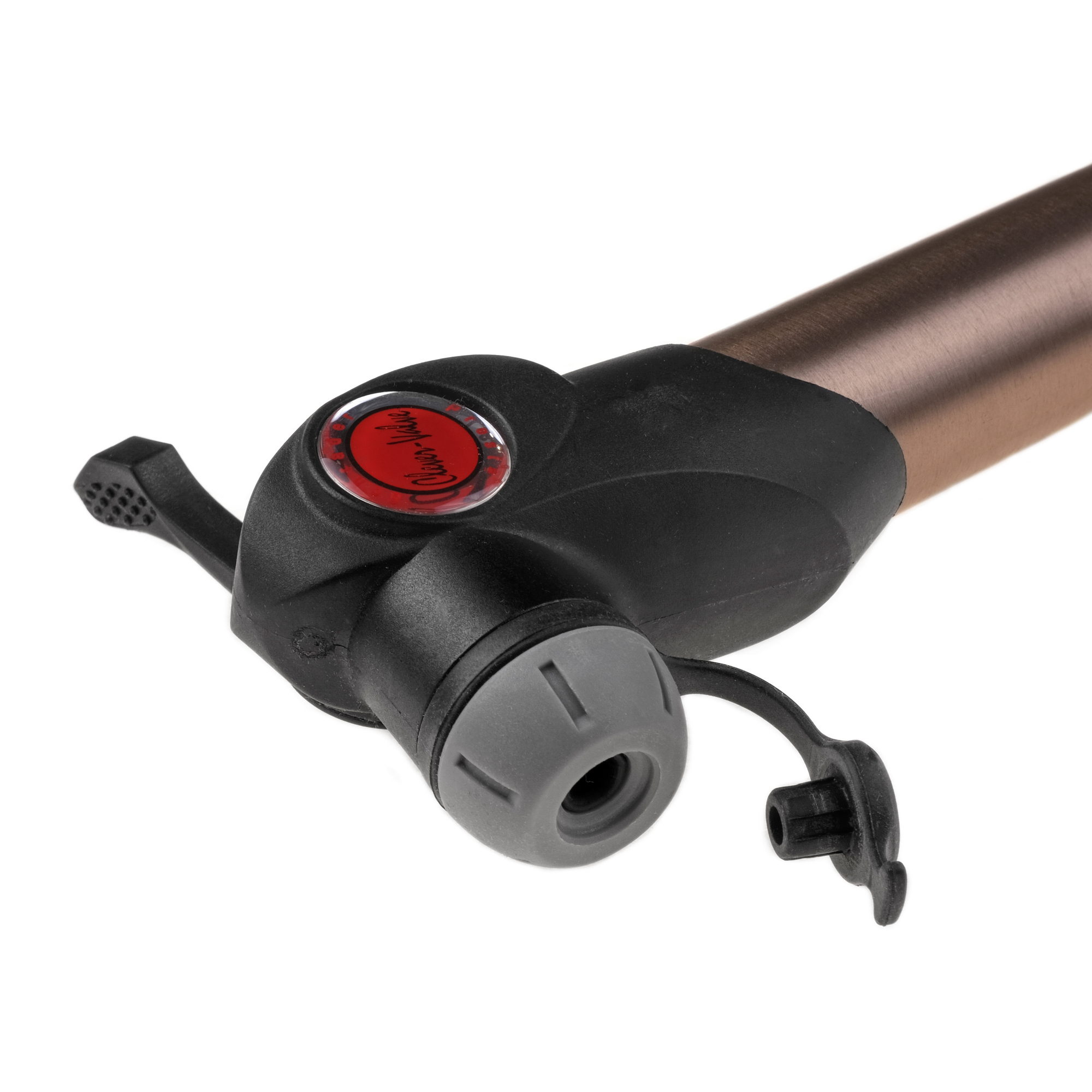 Алюминиевый корпус со стенками переменной толщины, максимальное давление до 11 атм. Подходит для всех типов велосипедных ниппелей (Преста, Авто, Данлоп).