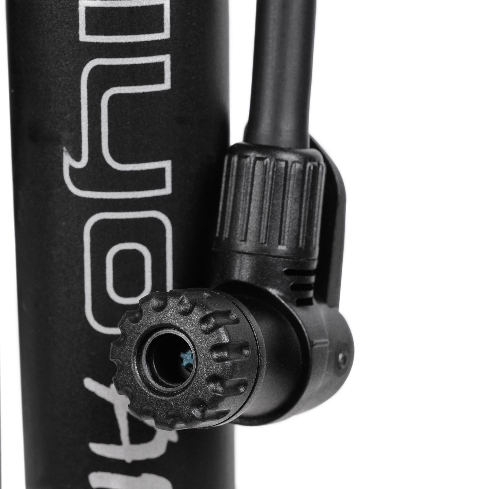 Головка подходит для ниппелей Presta и Schrader, а удлиненный шланг и прочное основание делаю насос идеальным выбором для любого велосипеда.