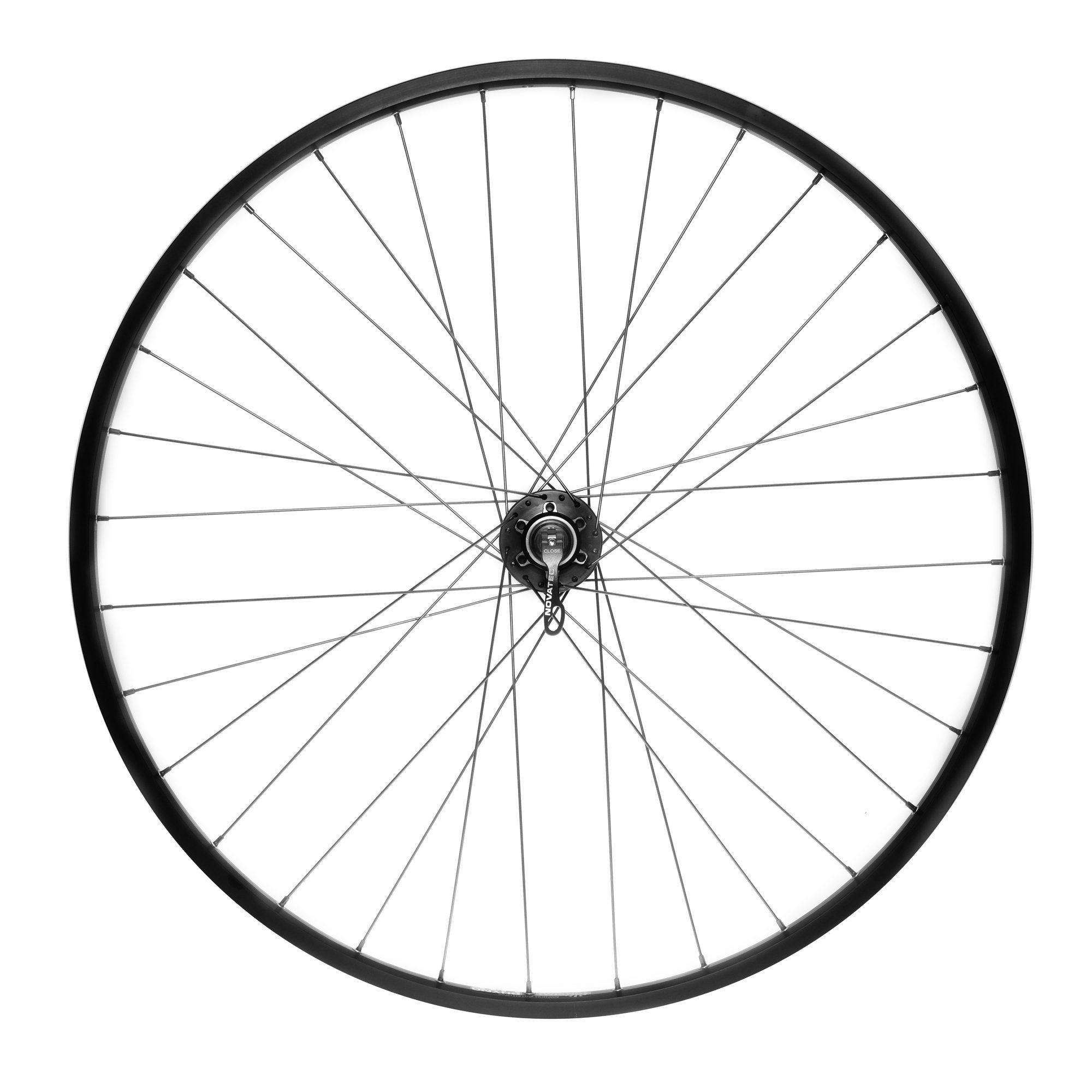 Переднее колесо для MTB 26", собранное на передней втулке Novatec D041-SB 100mm на 2 промышленных подшипниках под эксцентрик, черных спицах Richman 2.0mm, черных латунных ниппелях Richman 12mm и ободе Sunringle Rhyno LIte Клепаный. Доступно в черном цвете.