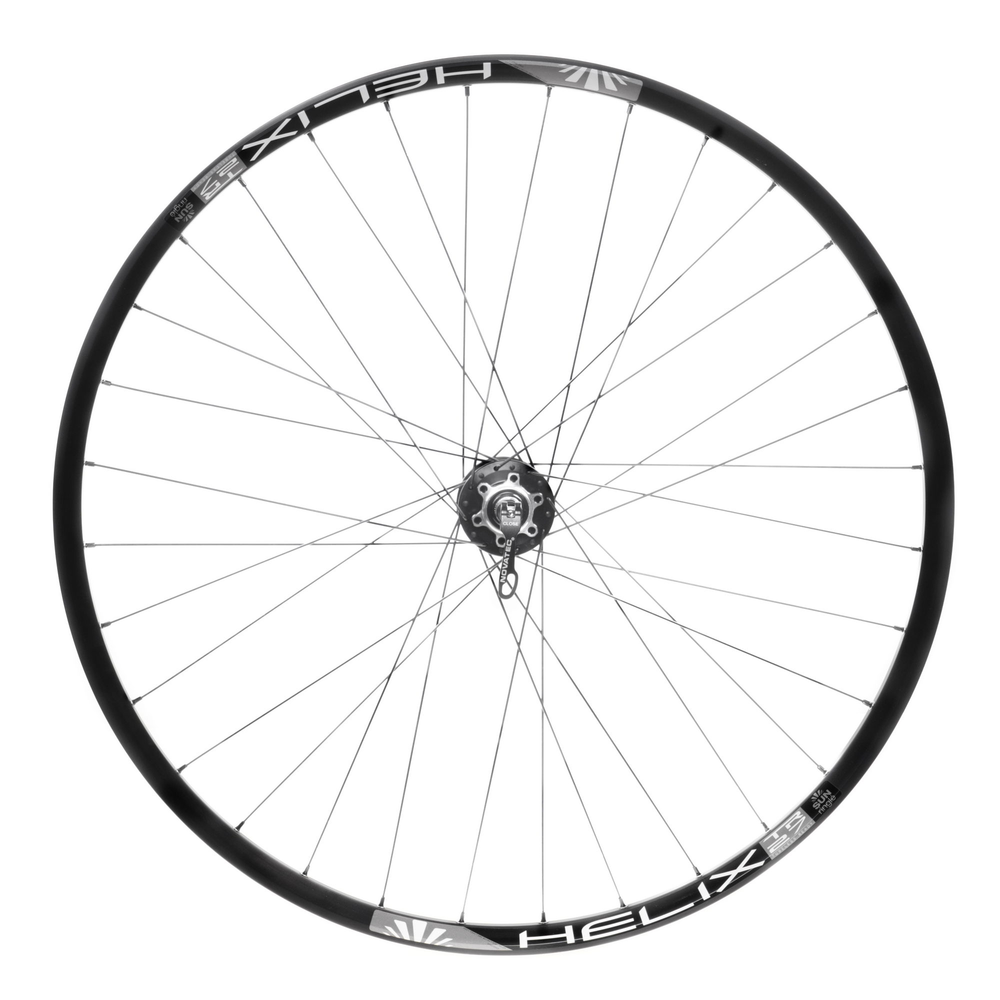 Переднее колесо для MTB 29", собранное на втулке Novatec D041-SB 100mm на 2 промышленных подшипниках под эксцентрик, черных спицах Richman 292/294mm 2.0mm, черных латунных ниппелях Richman 12mm и ободе Helix-TR27.