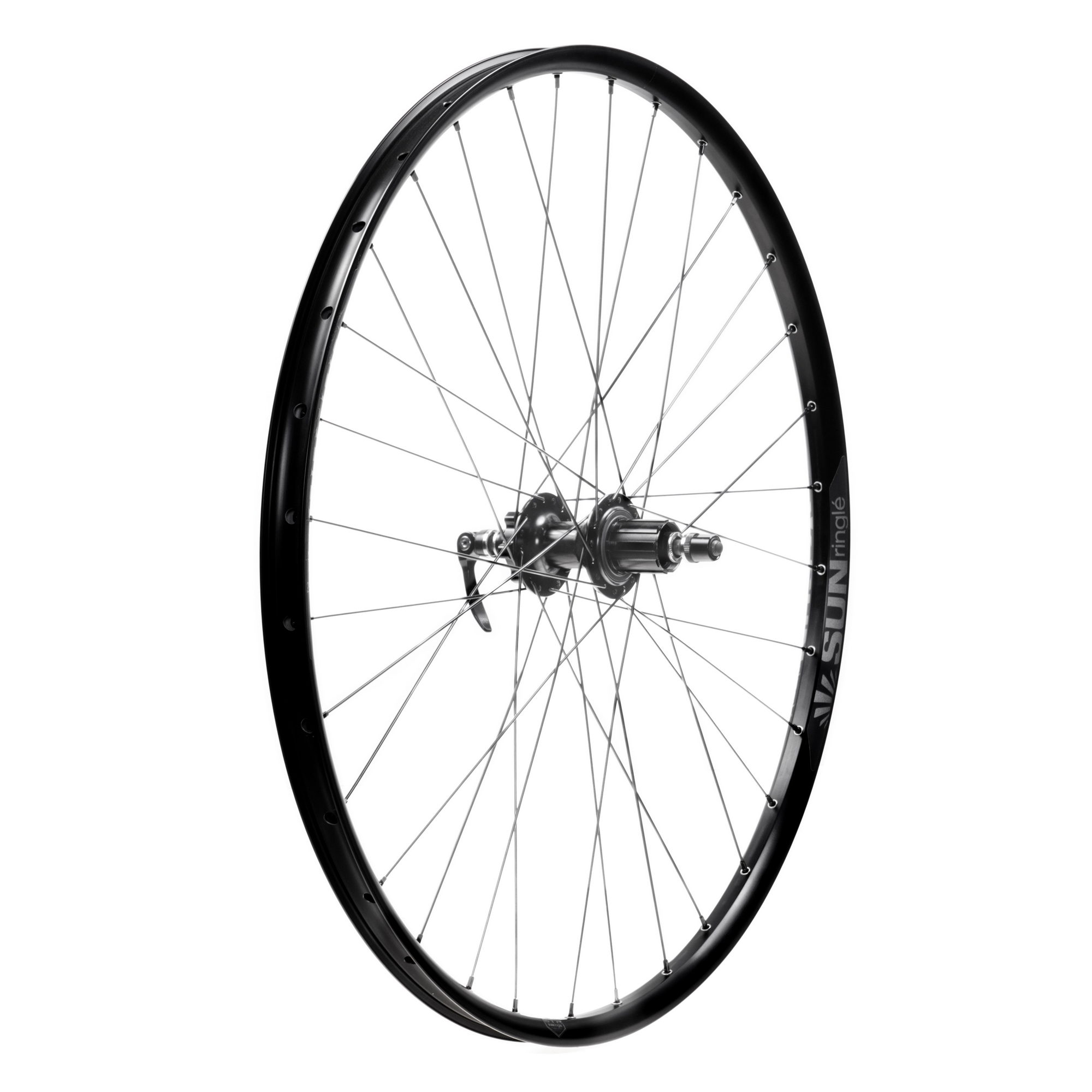 Заднее колесо для MTB 29", собранное на задней втулке Novatec D042-SB 135mm на 4 промышленных подшипниках под эксцентрик, черных спицах Richman 2.0mm, черных латунных ниппелях Richman 12mm и ободе Sunringle Rhyno LIte Клепаный.