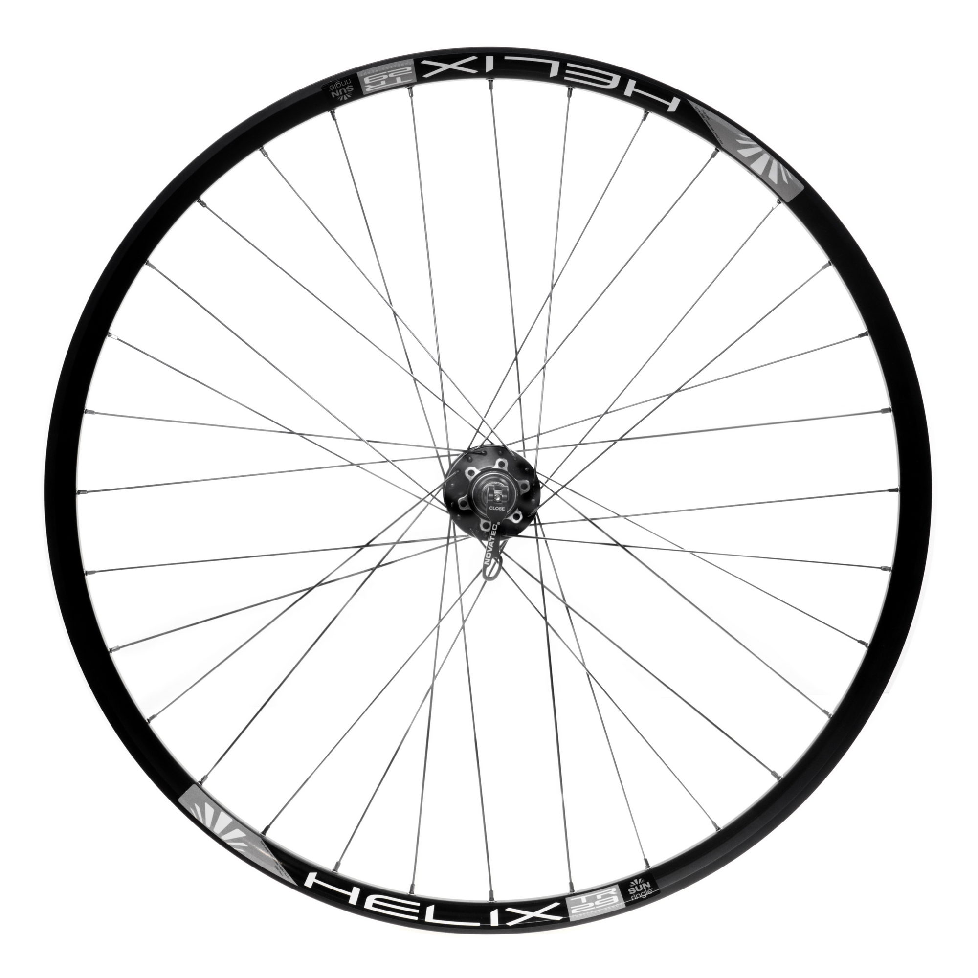 Переднее колесо для MTB 29", собранное на втулке Novatec D041-SB 100mm на 2 промышленных подшипниках под эксцентрик, черных спицах Richman 292/294mm 2.0mm, черных латунных ниппелях Richman 12mm и ободе Helix-TR27.