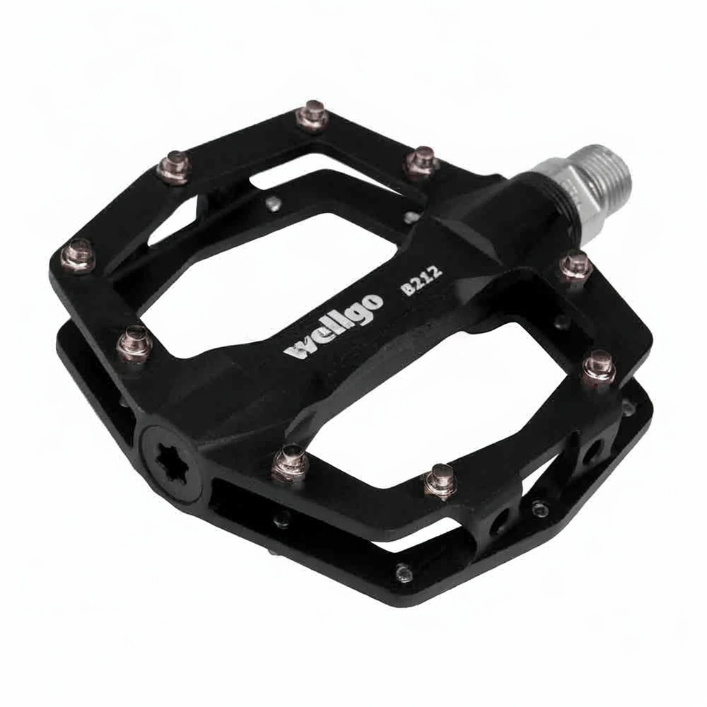Легкие педали Wellgo B-212 фрезерованные из алюминиевого сплава на промышленных подшипниках с Cro-Mo осью и съемными шипами.