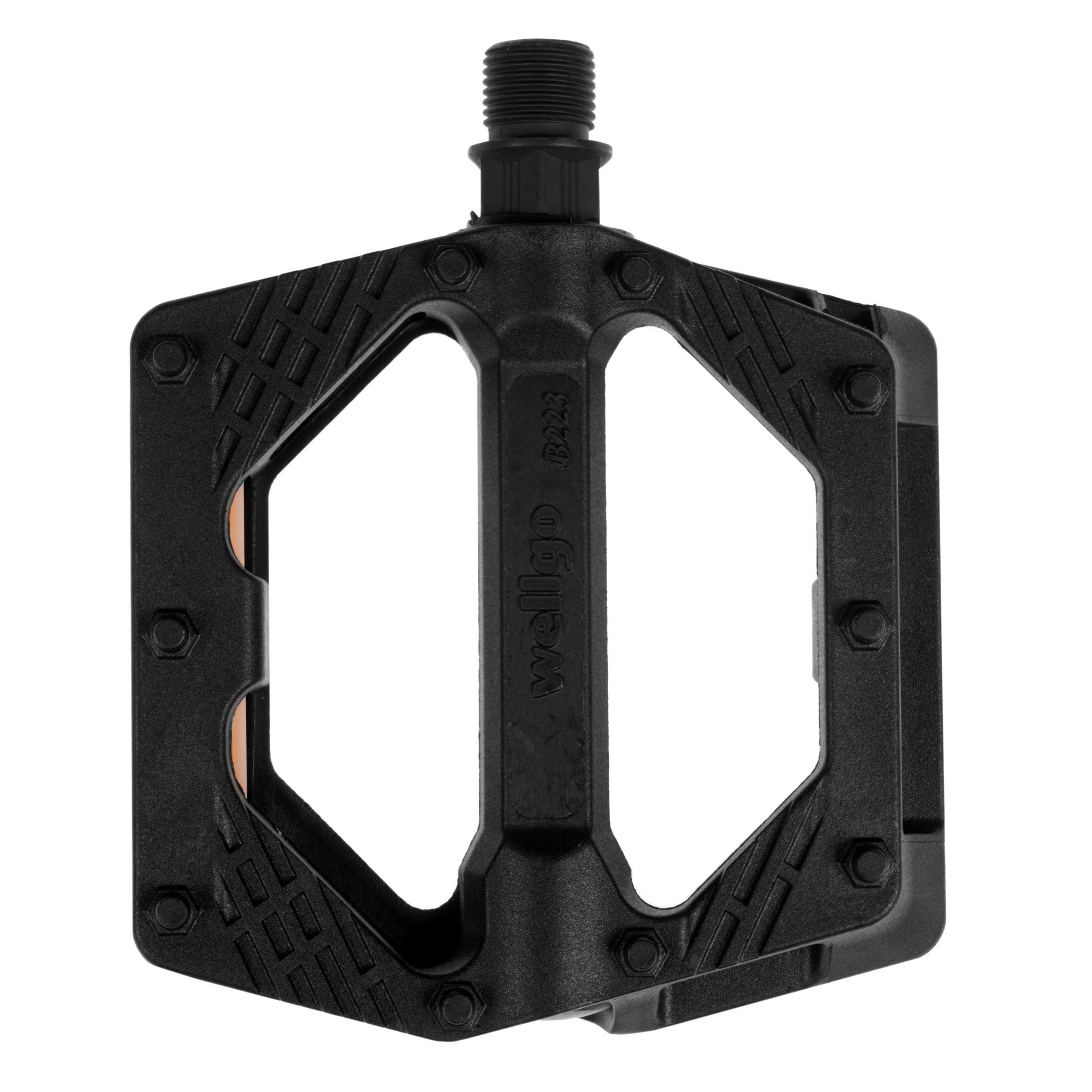 Педали Wellgo B-223-BP из высокопрочного пластика на насыпных подшипниках с интегрированными шипами и Cro-MO осью.