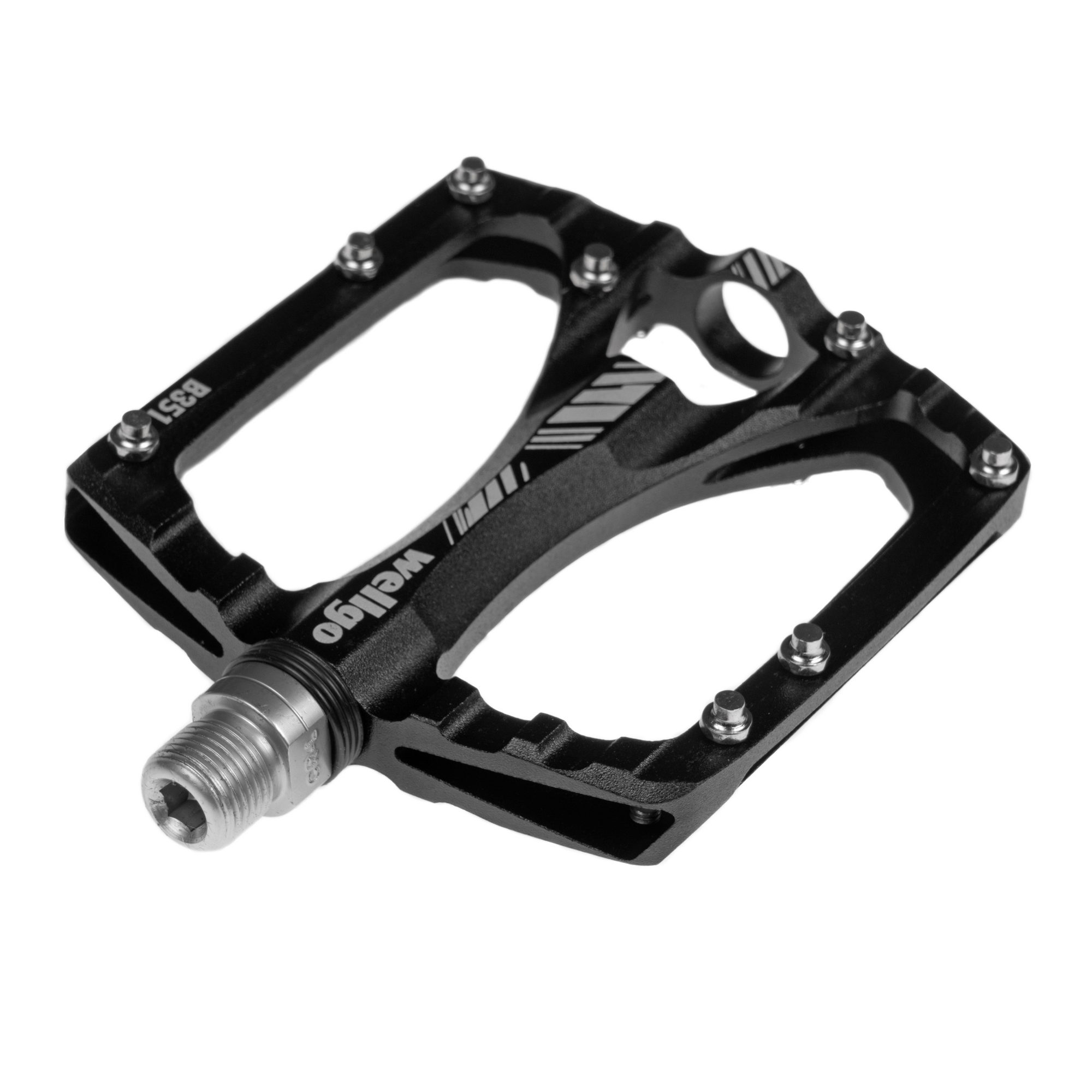 Легкие педали Wellgo B-351 фрезерованные из алюминиевого сплава на промышленных подшипниках с Cro-Mo осью и съемными шипами.