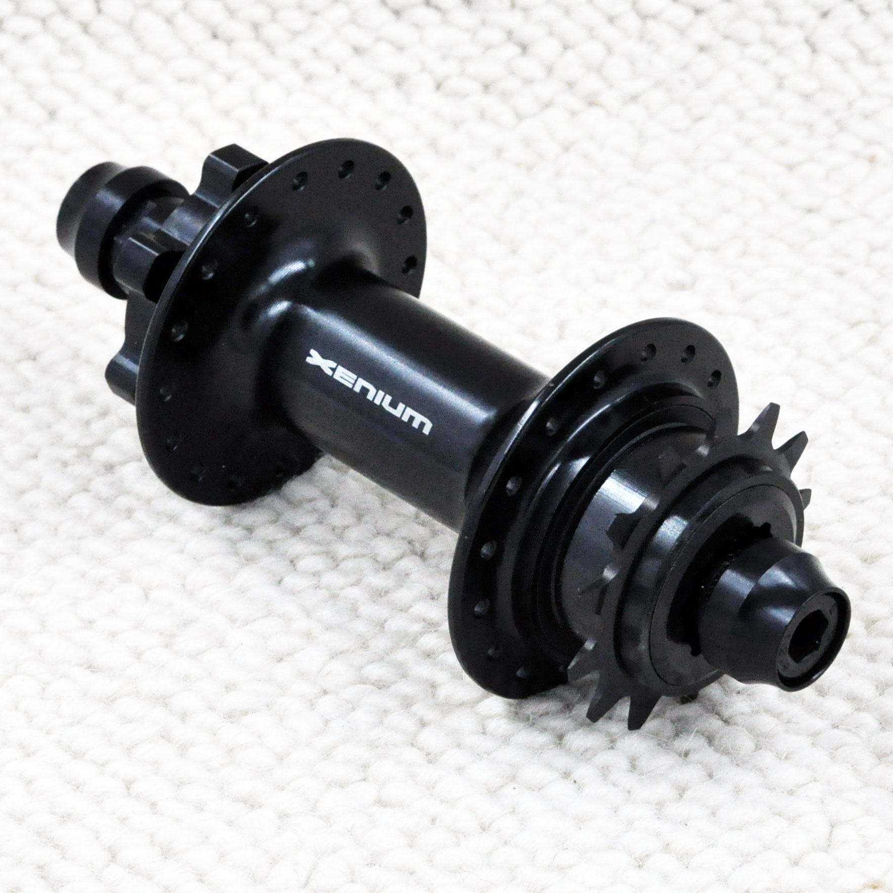 Xenium FR-82 - задняя втулка на 4 промподшипниках, 3 собачках, стальной Cro-Mo осью и стальным барабаном под раму 135*10мм под 10мм ось.